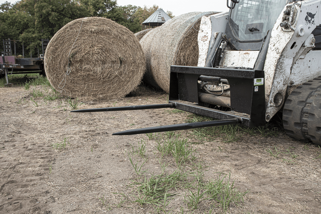 Prime’s 2-Prong Bale Spear has dual spears located at the base of the attachment, giving it the capability to lift large round or square bales with ease. Both spears measure 49″ long, 1-¾” thick, and are German forged, while the frame of Prime’s 2-Prong Bale Spear is manufactured from 3″x 3″ steel tubing. The 2-Prong Bale Spear can also be used as a pallet fork to lift lighter material. Request a quote today and see how Prime can help you lighten your load.