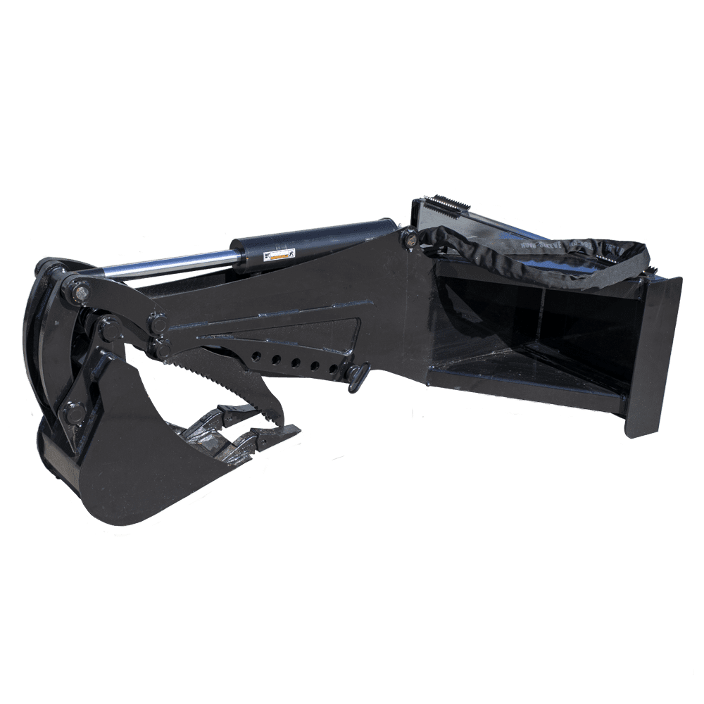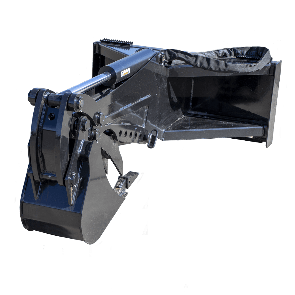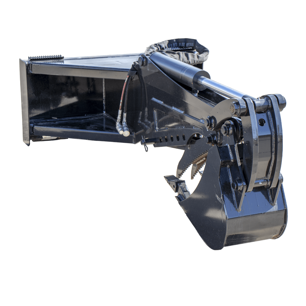 Our commercial-grade Backhoe attachment is available in 6 ½’ & 8 ½’ digging capacities with widths of 12”, 18” & 24” and features replaceable digging teeth to accommodate all of your excavating needs.