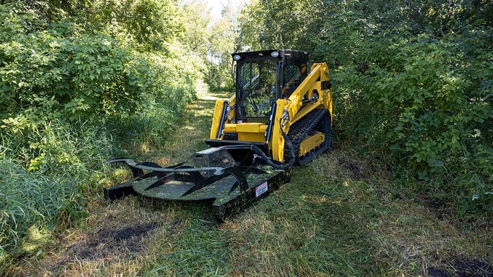 This skid steer attachment is also known as: Brush Hog, Brush Cutter